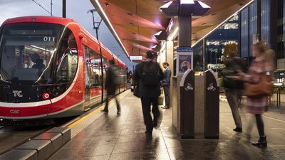 堪培拉的轻轨和公共巴士网络让游览这座首都变得方便且划算。乘客只需要一张预付费的 MyWay 卡就可以支付乘车费用,这张卡可以在便利店、报刊亭、所有轻轨站和部分公交车换乘站购买。